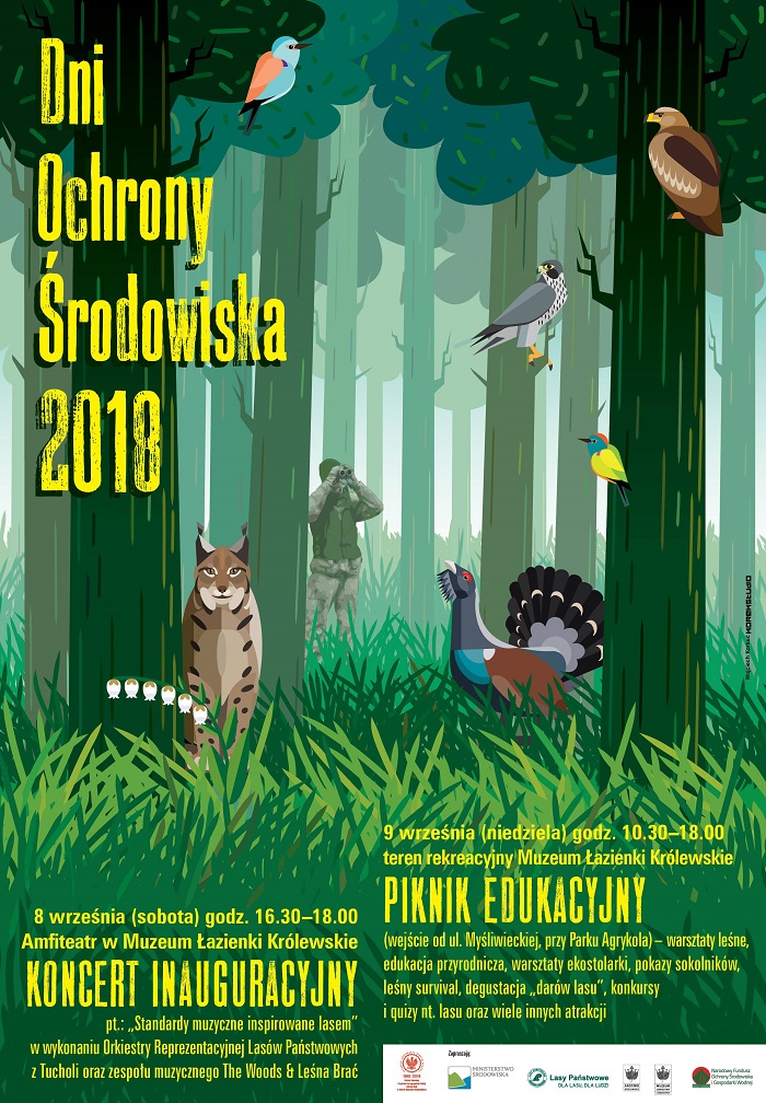 Rozpoczynamy koncertem w sobotę 8 września o godz. 16.30 w Amfiteatrze w Muzeum Łazienki Królewskie, gdzie zagrają dla Państwa Orkiestra Reprezentacyjna Lasów Państwowych z Tucholi oraz zespoły muzyczne The Woods & Leśna Brać. Będzie to muzyczne zaproszenie na dzień następny, gdyż w niedzielę 9 września w Muzeum Łazienki Królewskie od godz. 10.00 do 18.00 odbędzie się wielki piknik rodzinny (wejście od ul. Myśliwieckiej przy Parku Agrykola).
