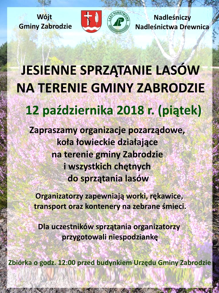 Serdecznie zapraszamy wszystkich chętnych do udziału w Jesiennnej akcji sprzątania lasów na terenie gminy Zabrodzie.